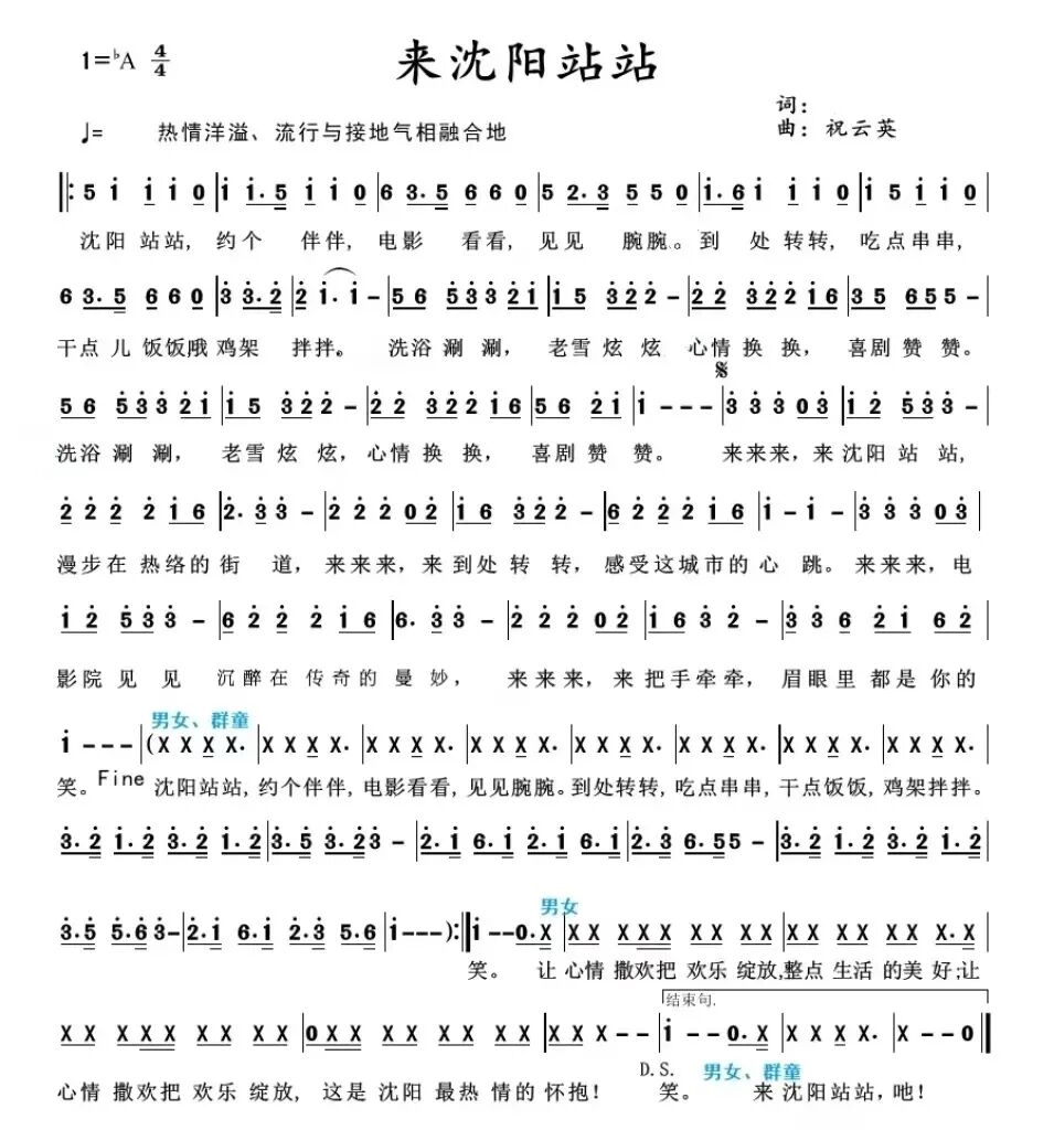 就在这你一言我一语中,歌词的雏形就产生了,为了让歌曲呈现效果更完美,我们找到辽沈知名歌唱家李璐老师,由她邀约著名作曲家祝云英老师对歌词进行打磨完善,串珠成线,最终一首活泼欢愉的《来沈阳站站》就此诞生。