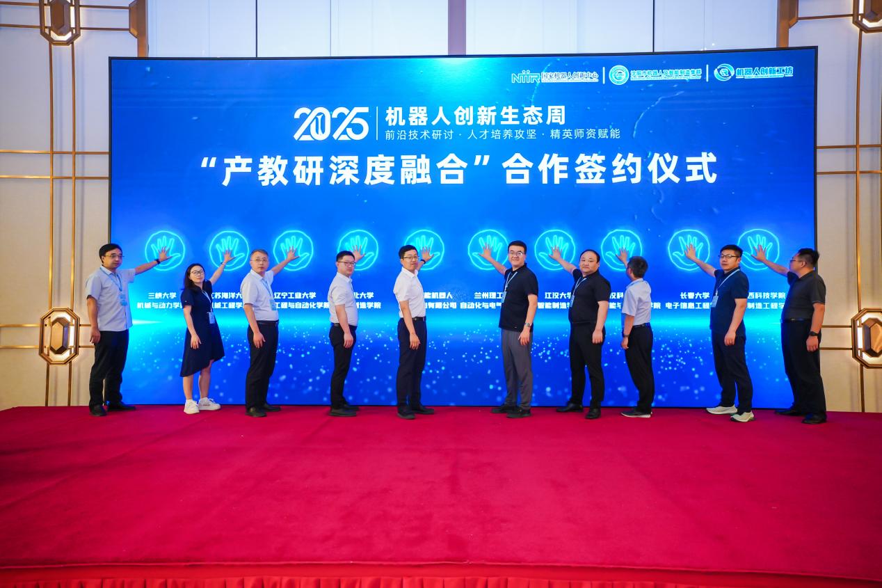 本次活动由国家机器人创新中心主办。活动开幕式上,国家机器人创新中心沈阳研发基地与9所高校签署合作协议,内容涵盖课程共建、实训基地建设及联合科研攻关,为产业链与教育链的深度衔接奠定基础。
