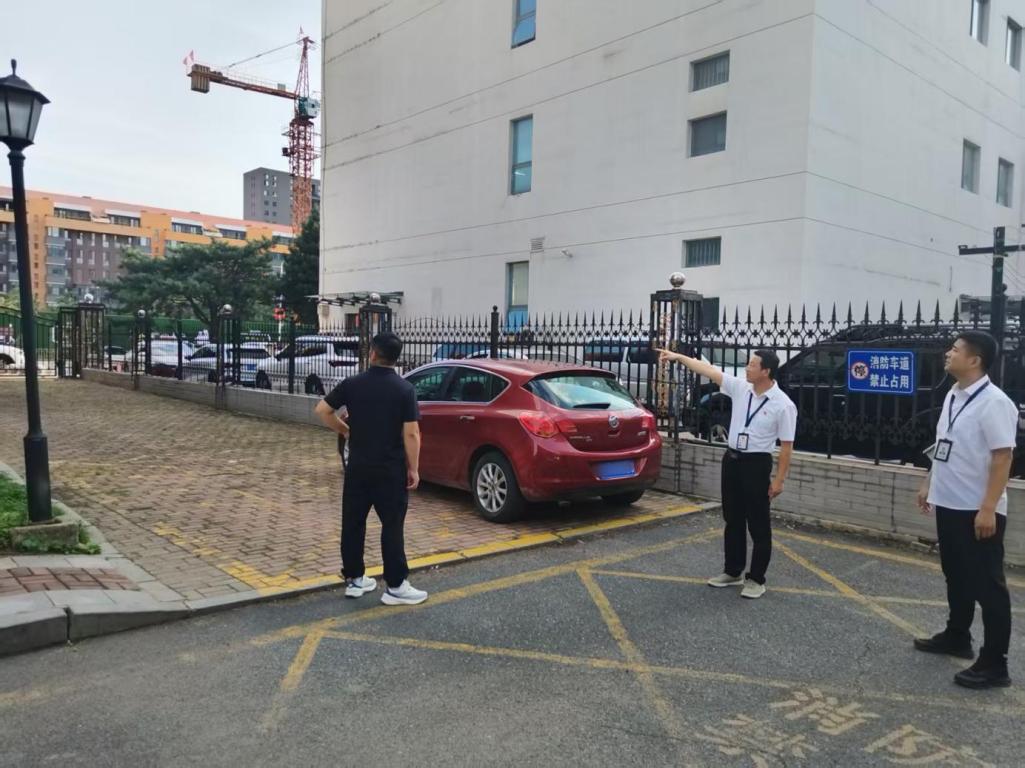 检查组实地检查发现占用消防通道车辆,联系物业立即整改。