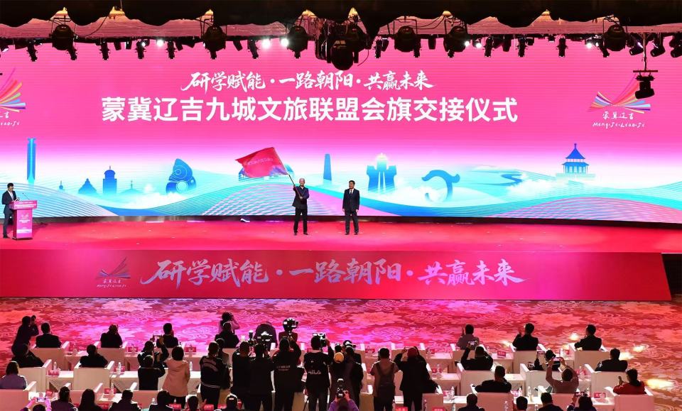 据了解,2022年,内蒙古赤峰市发起组建蒙冀辽五城文旅联盟。2023年,内蒙古通辽市将联盟朋友圈进一步扩大,由蒙冀辽五城拓展为蒙冀辽吉八城。2024年,河北承德市继续注入区域文旅合作新活力,联盟“大家庭”又增辽宁省锦州市,九城文旅联盟更加坚固。在过去一年里,九城始终锚定“资源共享、市场共拓、品牌共树”的核心目标,以行动破题、以合作聚力,在推动区域文旅协同发展道路上留下坚实足迹。蒙冀辽吉九城文旅联盟第四次会议,对2024—2025年九城联盟合作成果进行了总结,系统梳理了九城在文旅资源互推、客源市场共享、品牌联合宣传等方面的务实举措与成效;分享了在客源市场开拓、研学旅游开发、线路打造等领域的好经验、好做法,并围绕下一步如何深化联盟合作、拓展文旅新业态、强化研学资源整合等议题展开深入交流,通过进一步深化蒙冀辽吉四省区文旅协作,推进文旅产业协同高质量发展。会上,文旅联盟上下届会议举办地进行了会旗交接,下一届会议将在辽宁省阜新市举办。