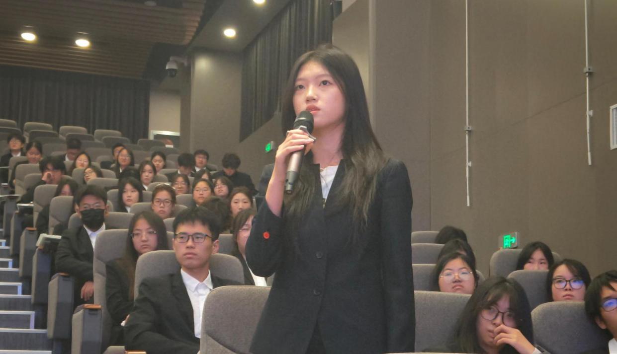 在随后的互动环节中,学生们围绕“青年一代如何传递爱国精神”“青春主理人项目如何让青年从共鸣走向行动”等话题与两位嘉宾进行了热烈而深入的探讨。思想的碰撞让“国家仪式”这一宏大概念在现场激荡起强烈的“青春共鸣”。