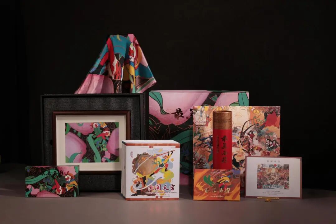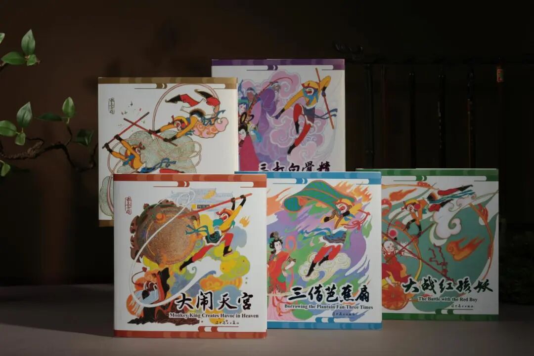 再版的成功,更让辽美社探索出“图书+文创”的立体开发模式:同步推出的《大闹天宫》原大复刻年画、金箍棒冰箱贴、文创丝巾,将插画中的经典元素融入生活——丝巾上的“天马祥云”取自《大闹天宫》,冰箱贴的“金箍棒”造型源自插图细节。这些文创产品不仅激活了IP的商业价值,更让“西游美学”成为跨文化传播的纽带。截至目前,《最美西游》已实现英文、阿拉伯文等多语种版权输出,“西游文化热”正随这些插图与衍生品蔓延,成为书业“IP出海”的鲜活案例。