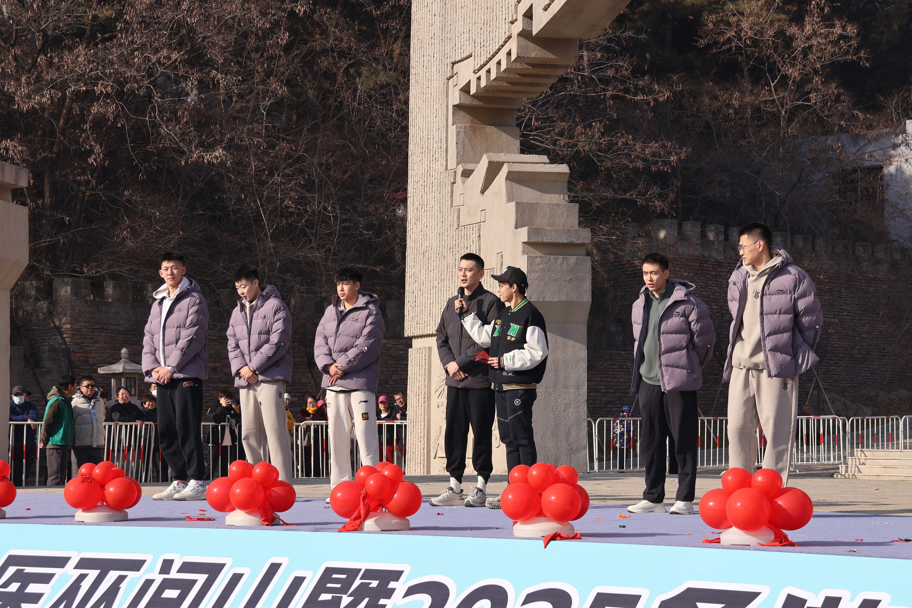 活动的核心环节在医巫闾山标志门精彩上演。气势磅礴的闾山鼓舞、刚劲有力的医巫闾山武术表演,与动感时尚的少儿篮球技艺展示同台辉映。此次活动特邀辽篮MC梁佳烁主持,辽宁男篮主教练杨鸣、球员赵继伟等的登场将现场气氛推向高潮。他们不仅展示了精湛的球技,更与现场的学生代表和观众进行了亲切互动,身体力行地传递了顽强拼搏、团结协作的体育精神。此外,活动还设计了“共登镇山 ‘辽’望巅峰”的延伸体验环节,进一步丰富了游客的体验感。