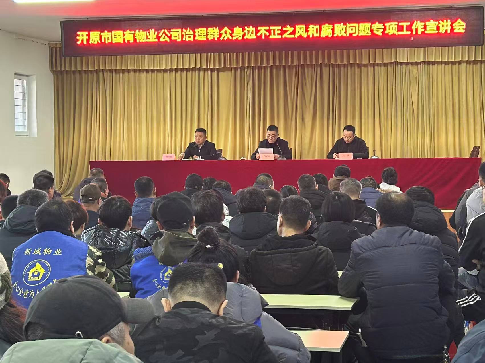 2025年11月18日,开原市国有物业公司治理群众身边不正之风和腐败问题专项工作宣讲会在新城街道会议室召开