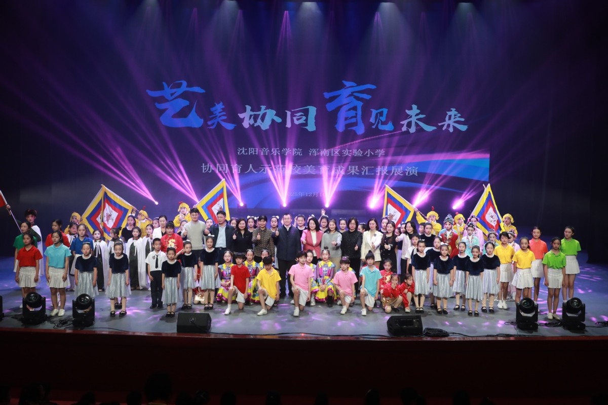 12月10日,由沈阳音乐学院、沈阳市浑南区实验小学联合主办,以“艺美协同·育见未来”为主题的协同育人美育成果汇报展演在沈阳音乐学院长青校区音乐厅上演。